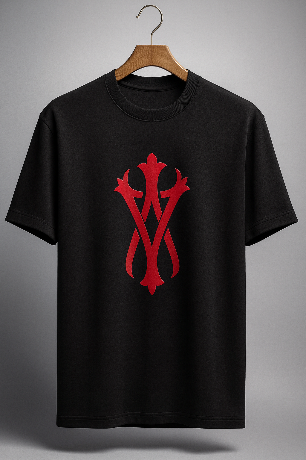 The Infernal Crest Oversized T-Shirt delivers a striking blend of minimalism and dark elegance. The front showcases a sharp, bold red infernal emblem, creating a strong visual impact against the deep black fabric. Its clean, centered placement gives the tee a premium, symbolic, and modern streetwear vibe.