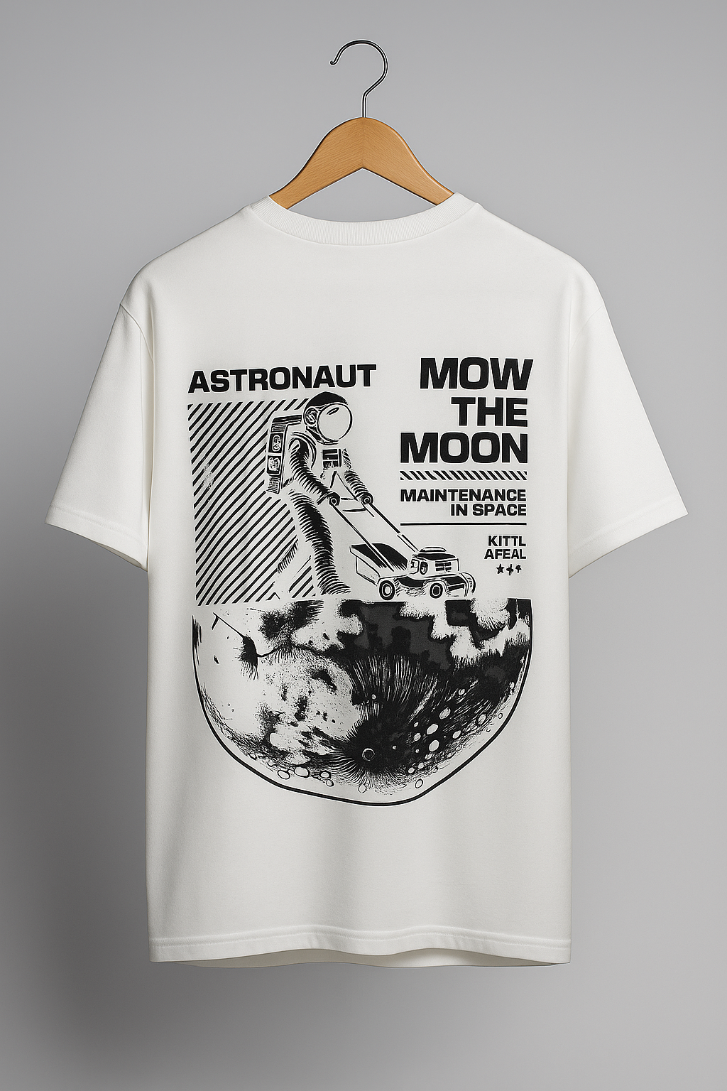 Experience comfort and creativity with our “Mow the Moon” Oversized T-Shirt, designed for those who love style with a story. The front features a clean and minimal “MOON” print, while the back showcases a detailed astronaut mowing the moon graphic, adding a unique and artistic touch to your look.
